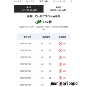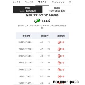 2025年に行われたプラロトで私がどれくらいスコアを獲得できたかお伝えします。2025年10月7日~2025年12月27日までに行われた9回の抽選結果です。